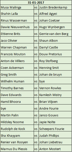 Here is the draw for tonight (if you missed it on the WhatsApp group chat).